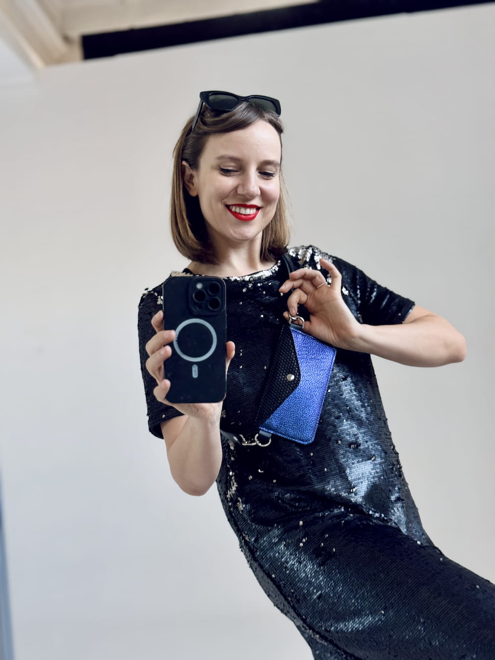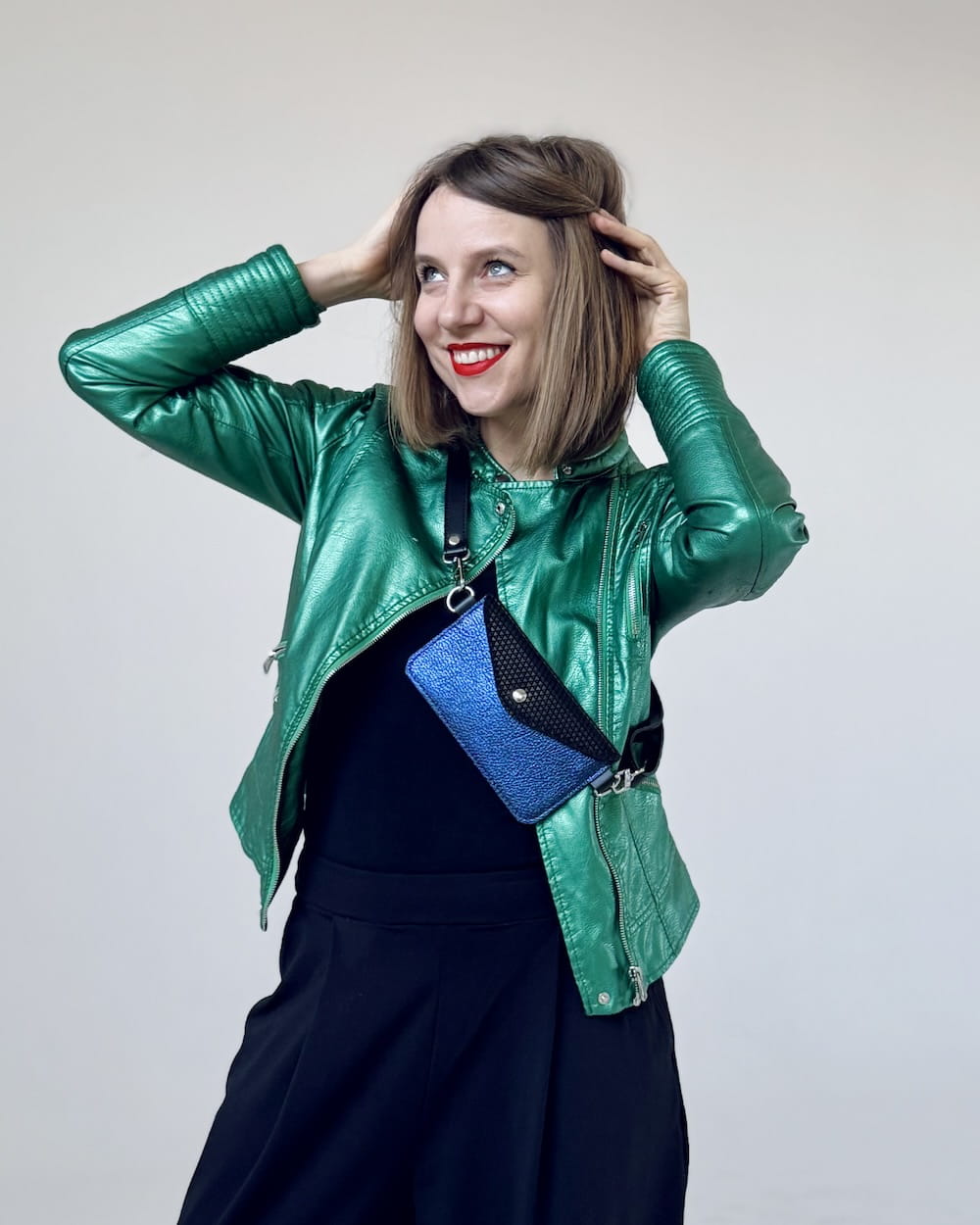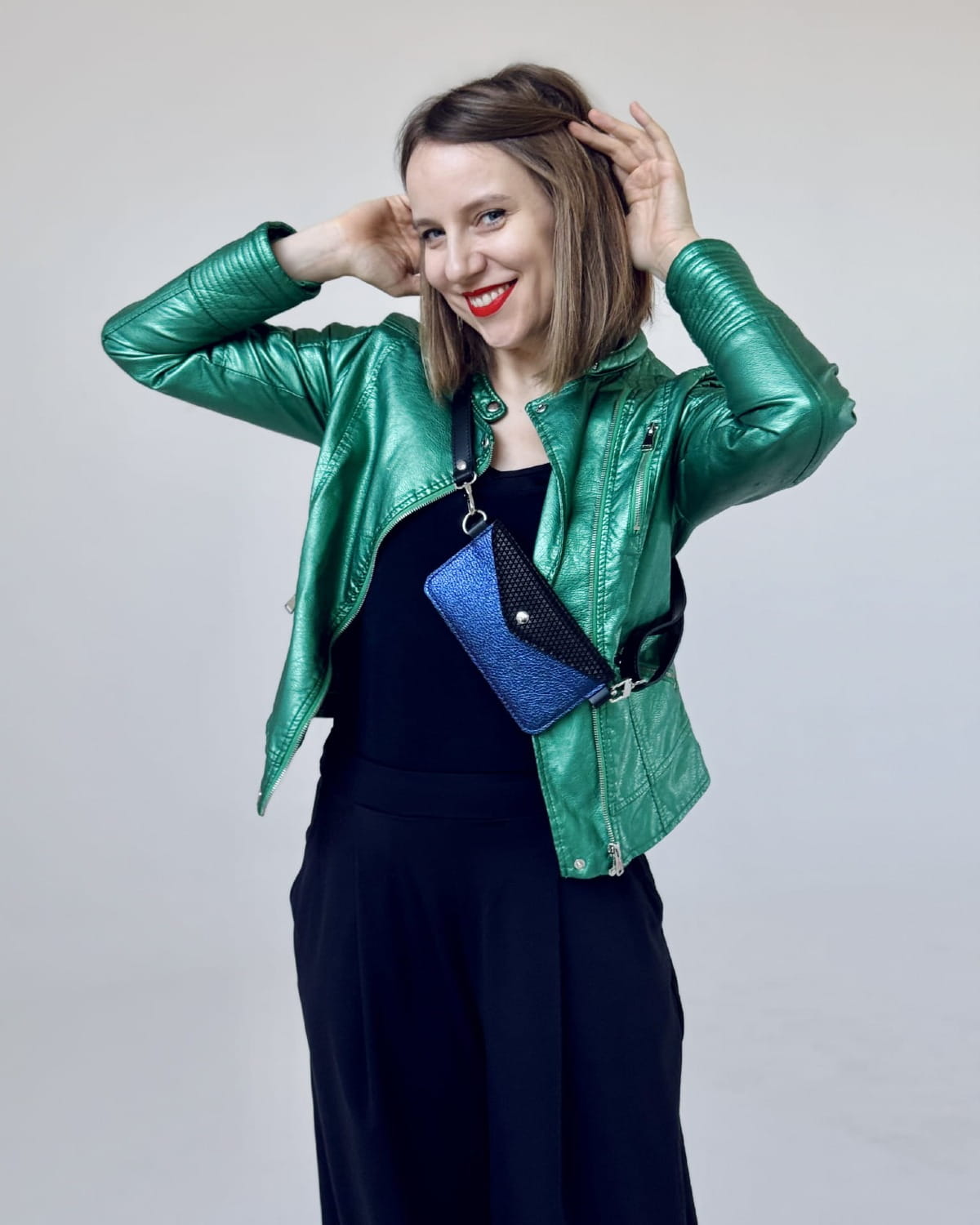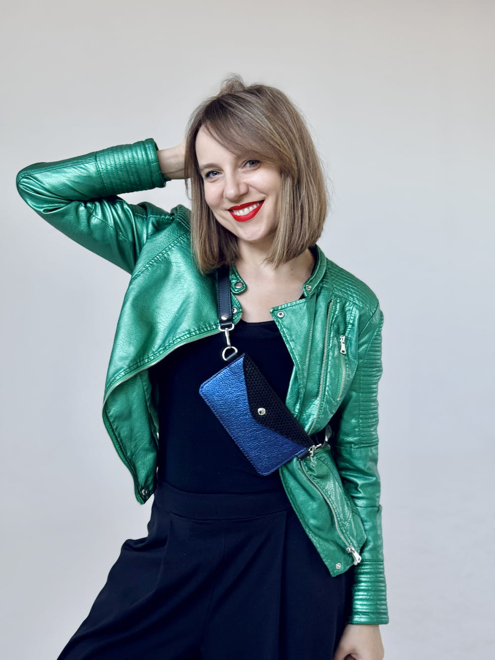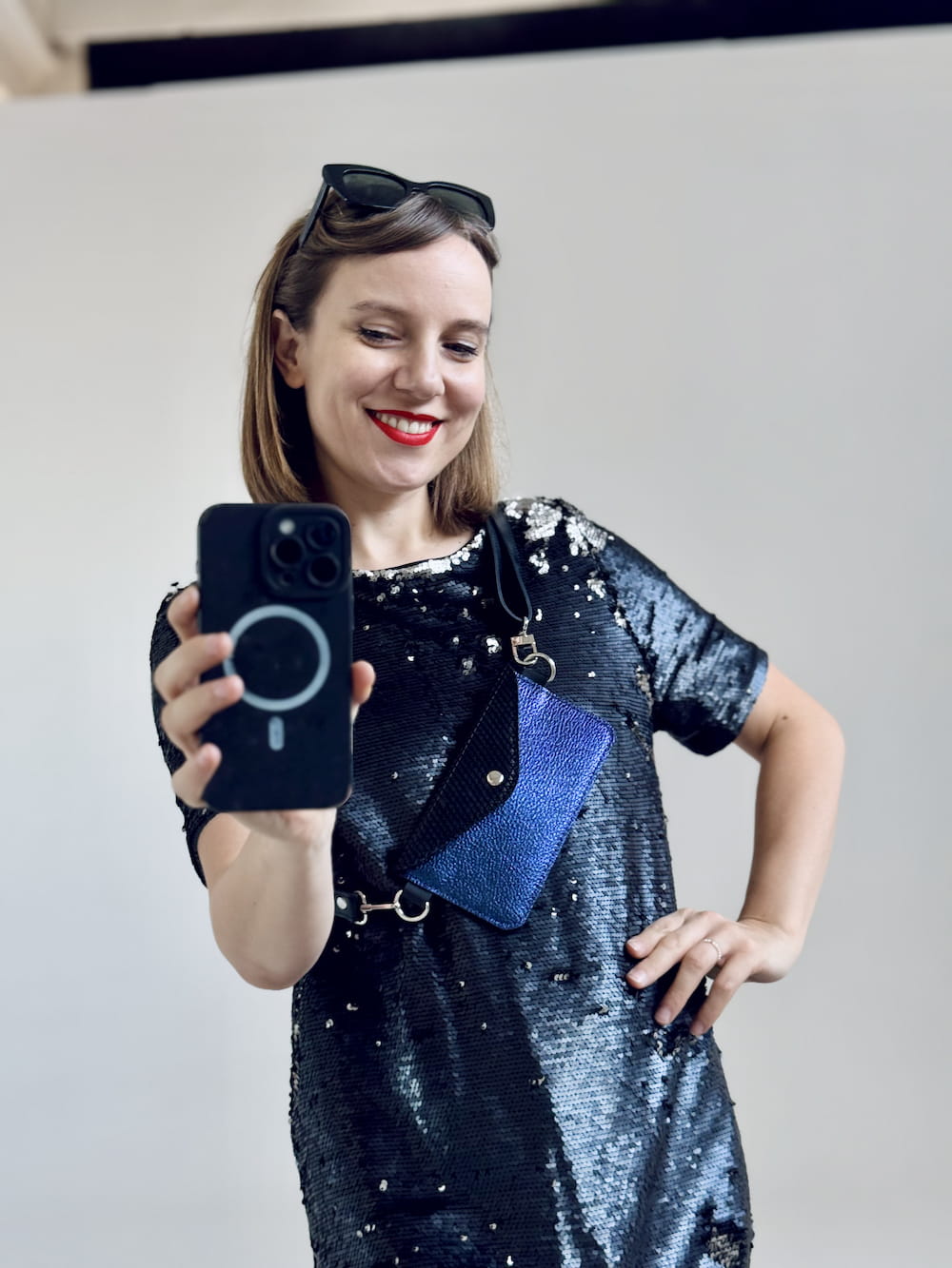 Lze ji nosit buď na rameni, nebo zešikma jako klasickou kabelku, ale může sloužit i jako elegantní pouzdro na opasek, do kterého se vejde telefon nebo platební karta.