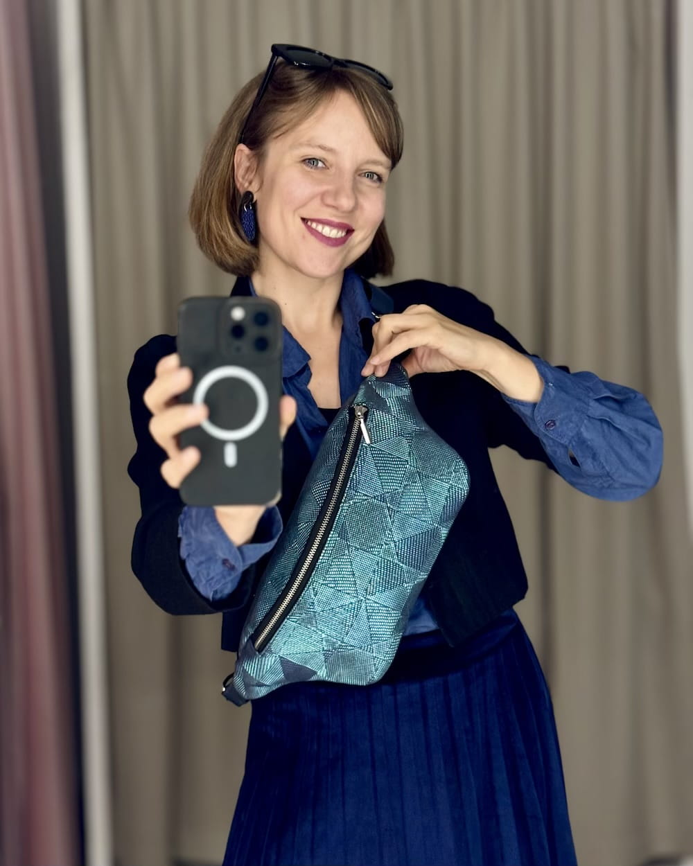 Pouzdro je jednokomorové, ale má dvě kapsy na vnější straně a uvnitř - na zip.